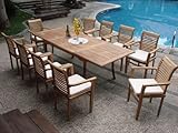 .../ New 11 Pc Luxurious Grade-A Teak Dining Set - Large 117" Rectangle Table And 10 Stacking Arm Chairs [Model:MS5] / Furniture Teak